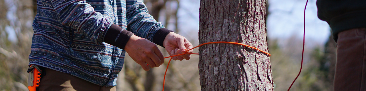 Japan Bushcraft School 資格保有者向けに、ロープワーク、垂直降下、コンパスワーク、ナイフメンテナンス(使用しているナイフはほぼ全て鍛造による自作)などを担当している。