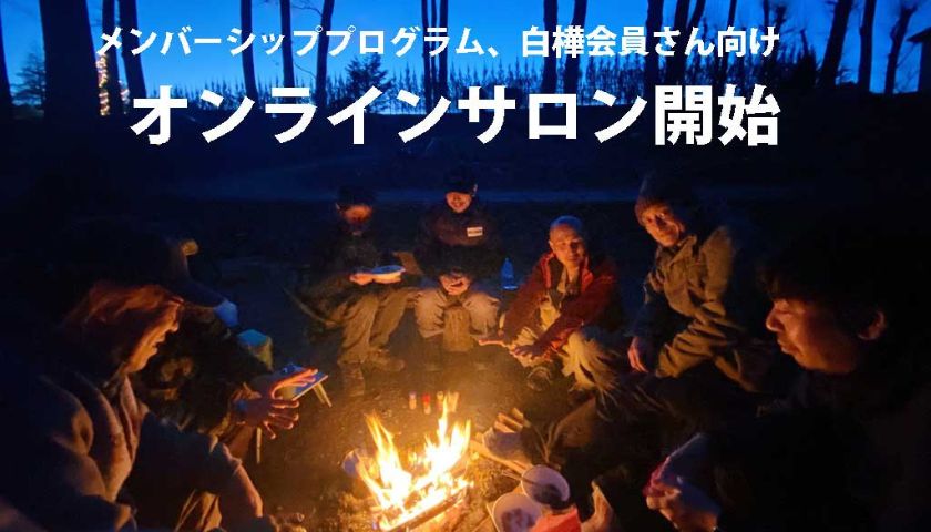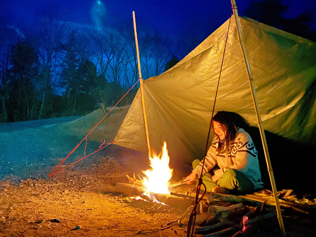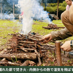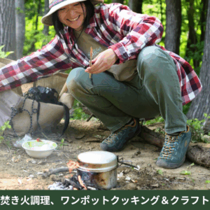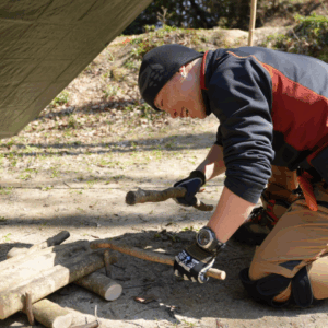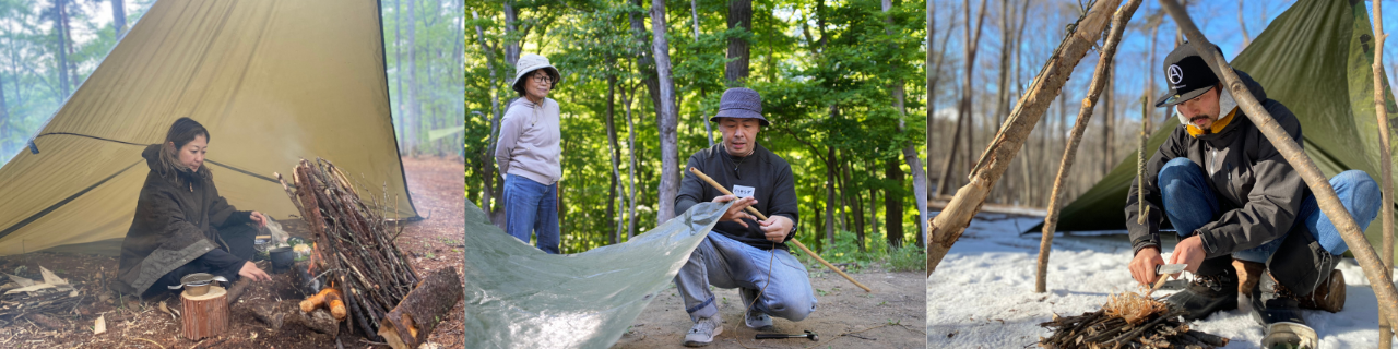 <対象> 18歳以上の方 アウトドア経験ゼロの方も沢山ご参加になられています。 <期間> 一泊二日、またはオンライン1日&実地講習日帰り <内容> ロープワーク 先ずはこの4種類 / 一人でシェルター(寝床)を作ってみよう / 自然でも災害時でも!命を繋ぐ法則を学ぶ / ナイフや鋸の安全な使い方と基本テクニック / 現地素材で作る色んな道具 / 五感を豊かに働かせるテクニック / 道に迷わない方法、森での歩き方 / 焚き火の仕方(薪の集め方、組み方、着火、維持の方法)/ 水の浄化方法 / サバイバル時に最適な調理方法 など